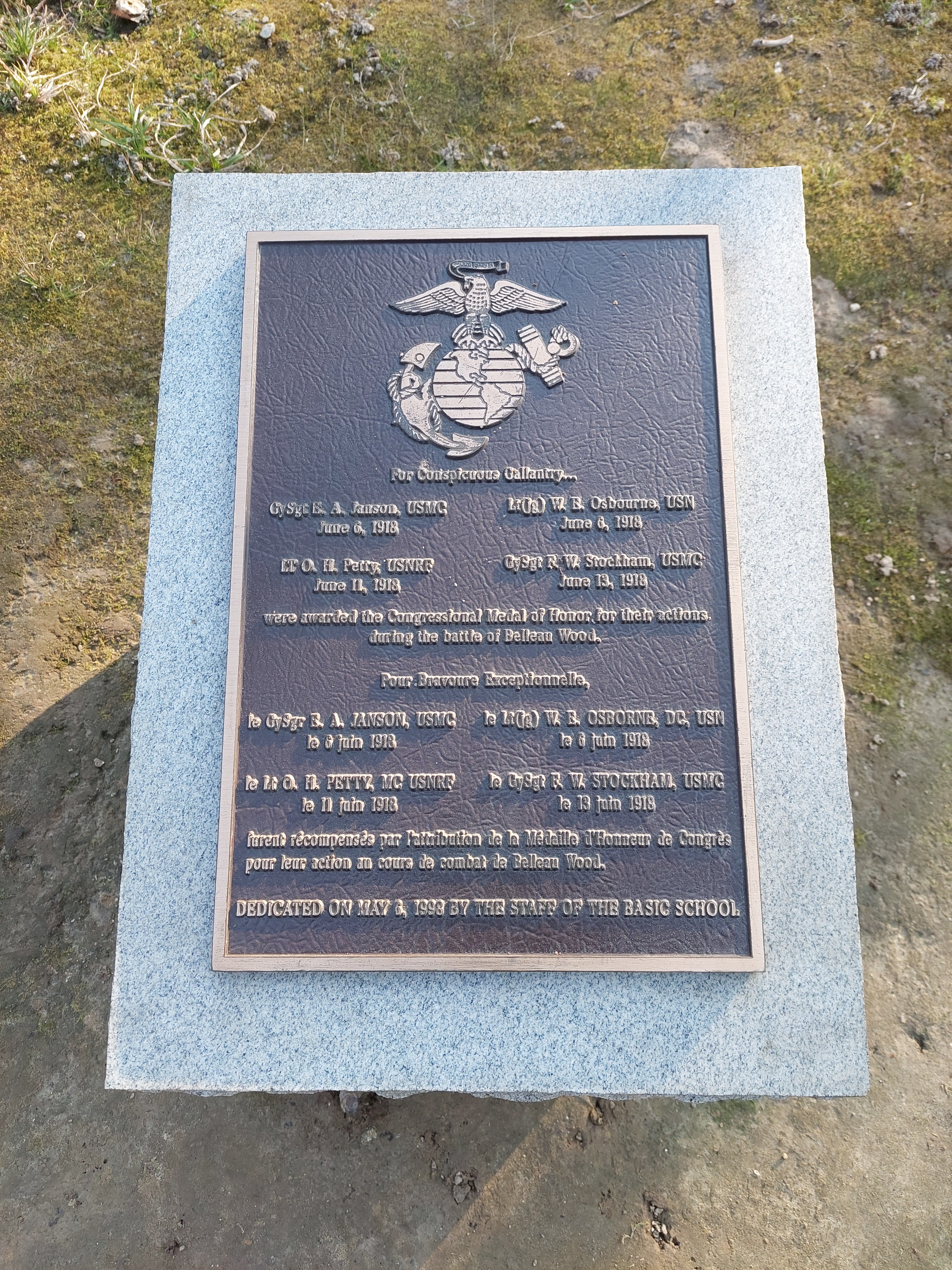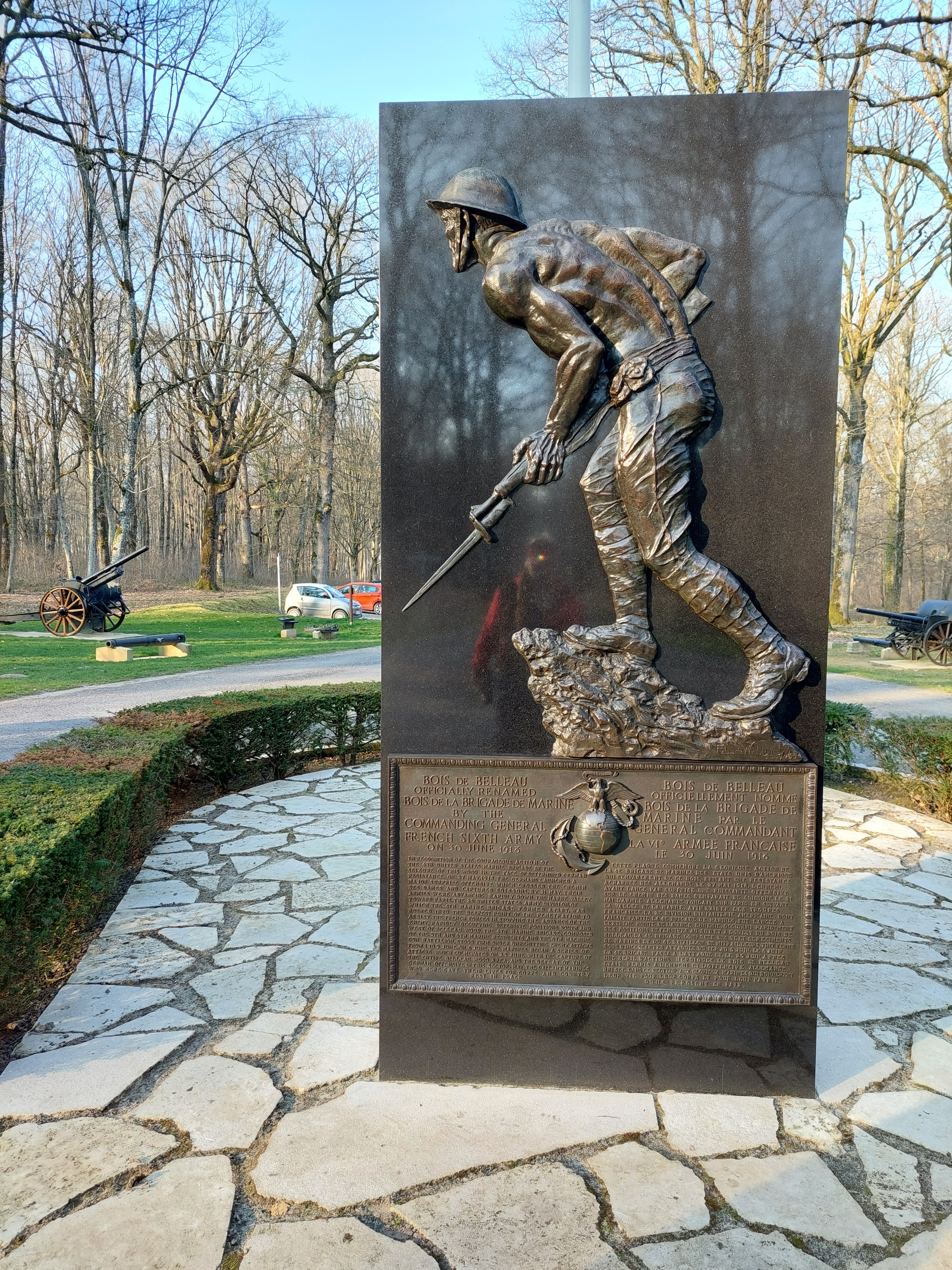 En tant que marine américain, ce terrain est sacré pour nous. Lors d'un voyage de retour de Normandie vers la Bavière, ma femme et moi avons fait un détour pour venir voir d'où nous, les Marines, tirons notre nom de « Chien du Diable ». J'ai marché jusqu'à la forêt et j'ai vu les trous d'artillerie qui existent encore. J’ai essayé d’imaginer ce que cela devait être pour les guerriers qui combattaient dans ces bois. J’ai été ému et honoré. Cela valait le détour de notre itinéraire pour vivre cette expérience. Que Dieu bénisse les Marines qui ont combattu à Belleau Woods. Sempre Fi!